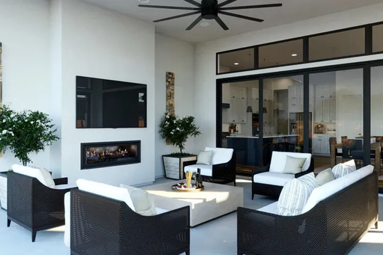Spacious and versatile, enjoy an outdoor oasis with our Pyvot Covered Patio. Providing the perfect balance of shelter and outdoor living, relax while dining outdoors, watching the game, or sipping drinks around the fireplace.